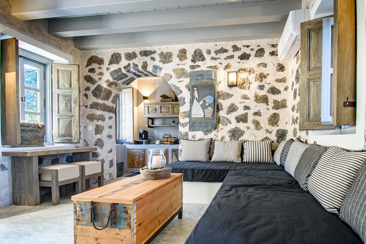 Inspirado en la arquitectura tradicional, Liotridia es un apartamento tradicional que ha sido renovado con gran pasión por los propietarios actuales. Su diseño interior evoca una auténtica casa nisyrian. La propiedad está ubicada en el pueblo de Mandraki, en el corazón del pueblo, junto al mar. Justo debajo de la casa, hay uno de los bares de cafeterías más famosos de la isla, perfecto para relajarse y entretenerse. La propiedad ofrece una vista increíble del mar Egeo desde su balcón privado.