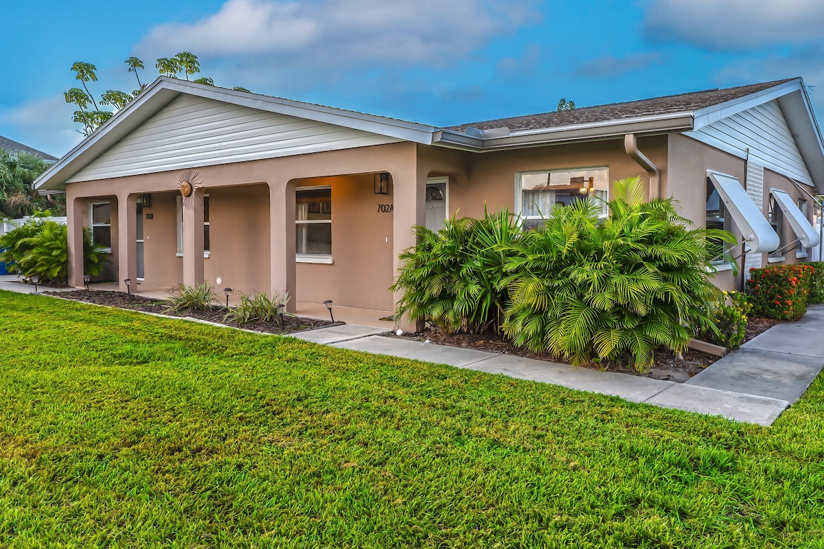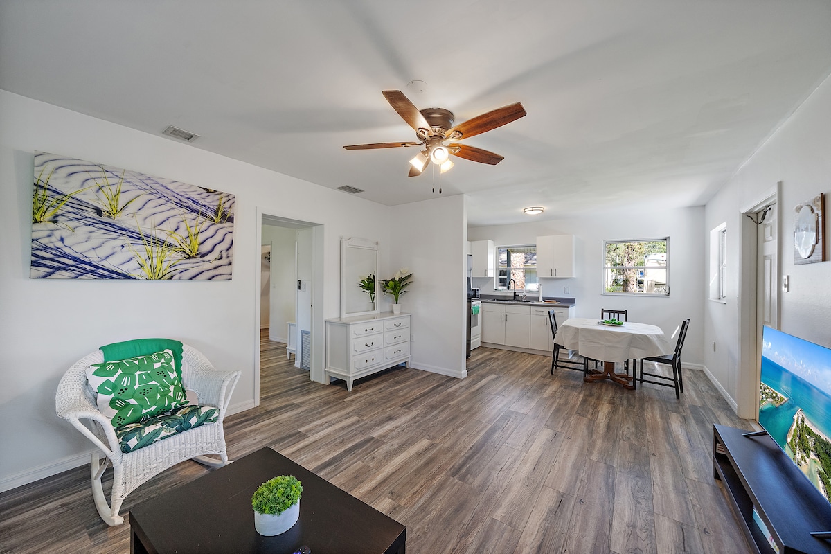 Bottom floor of duplex. Just 3 minutes from Nokomis Beach, this cozy cottage is your perfect Gulf Coast escape! Avocado tree, 2 mango trees, tangerine tree and key lime tree on property. 🛌 Sleeping arrangements: • 1 Queen bed • 1 Full bed • 3 Twins ☀️ Enjoy bright, beachy vibes, plenty of space for family or friends, and easy access to Nokomis Beach and Casey Key. 🌊 Spend your days swimming, kayaking, shell hunting, or catching unforgettable sunsets. Restaurants and shops nearby