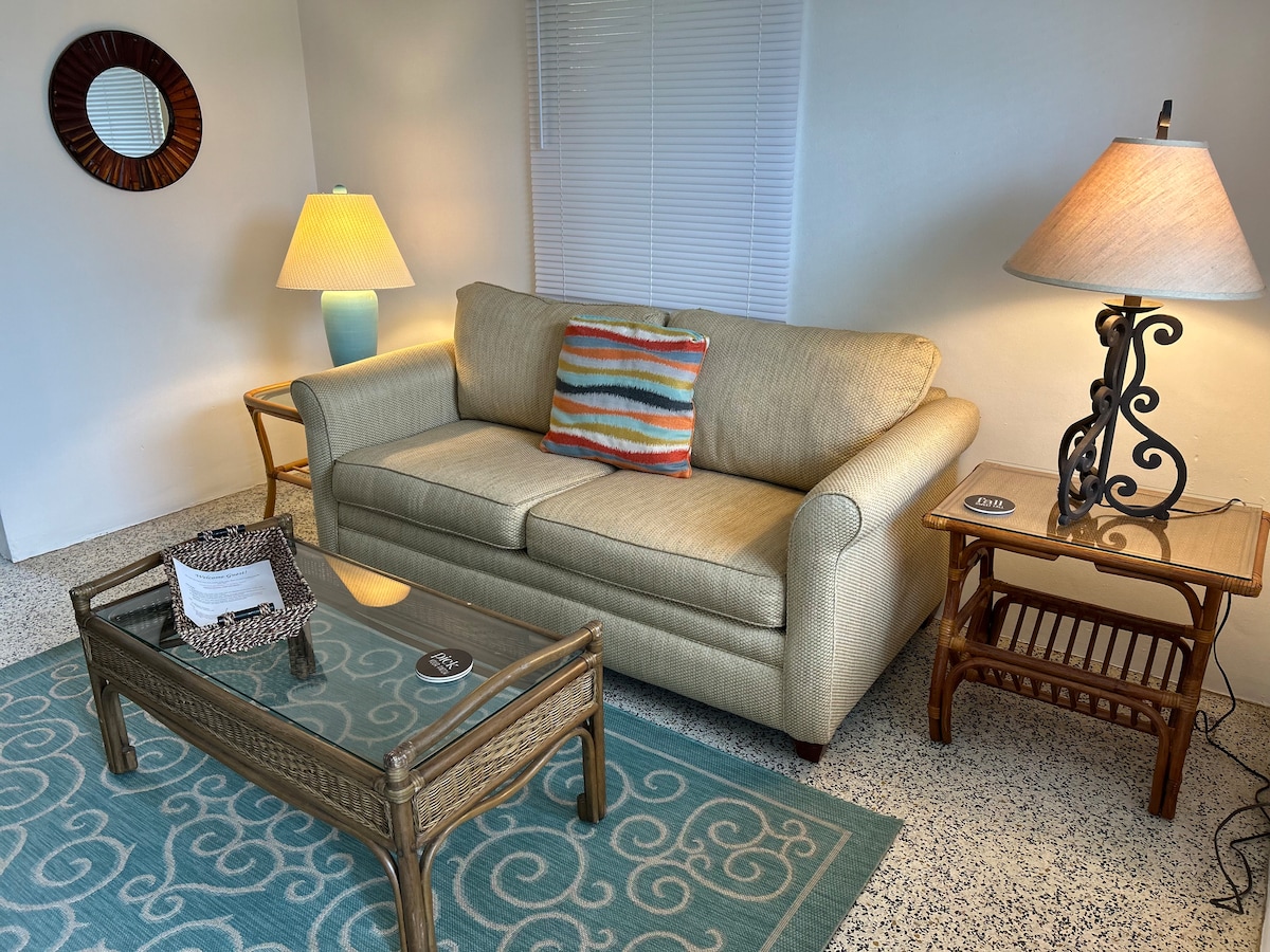 14 room Beach Resort on beautiful Casey Key. This newly designed condo features memory foam beds, couch, safe, HDTV, WIFI, kitchenette & dinette, keurig coffee maker, quiet mini split ac/heat, walkin granite shower & is 25 steps to the sandy beach.