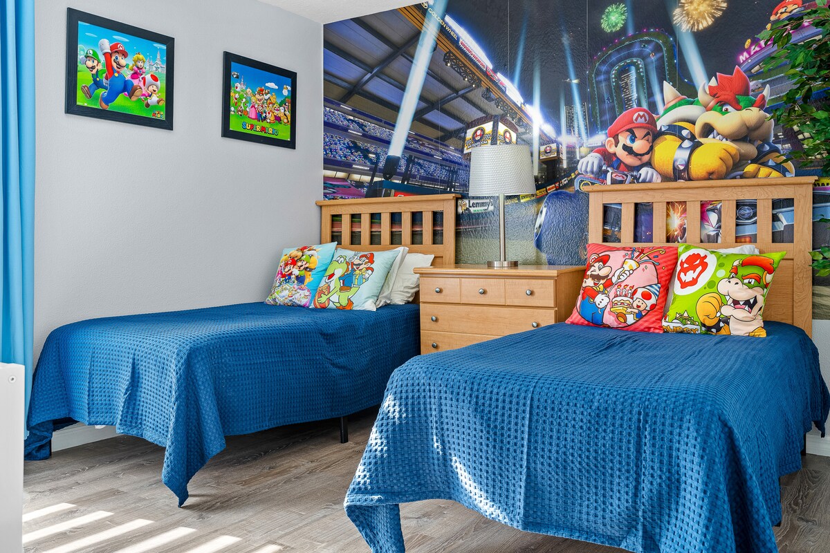 Encuentra la felicidad en nuestro paraíso de Kissimmee, donde la moderna villa cuenta con piscina de agua salada, espaciosas salas de estar y encantadoras habitaciones temáticas que prometen sueños mágicos. La suite principal ofrece comodidad con acceso directo a la piscina y un lujoso baño privado, lo que garantiza un santuario privado para la relajación. La villa se complementa con acceso a un gimnasio bien equipado y una piscina comunitaria. Perfectamente ubicada, nuestra casa es una puerta de entrada para explorar lo mejor de Orlando, desde los parques temáticos hasta las costas.