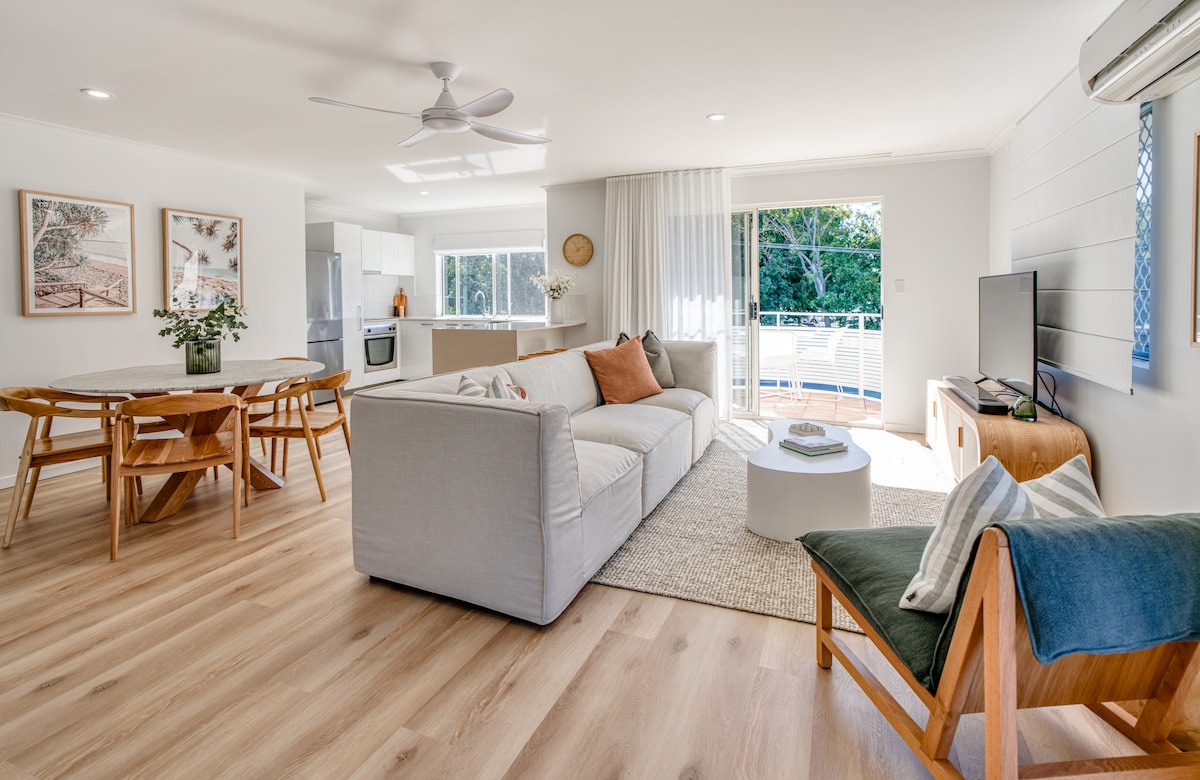 ** If you are renting a weekend in February, please see note below on the resort pool renovation** Set in the idyllic Noosa Heads, this coastal getaway is a perfect couples retreat. A short 550m walk down the hill to the iconic Hastings street and Noosa National Park and Noosa Main Beach precinct via a footpath. The area is a playground for surfing, bush walking and outdoor lovers. Surf, sand, food and retail therapy, all within a few minutes walk of the apartment door.