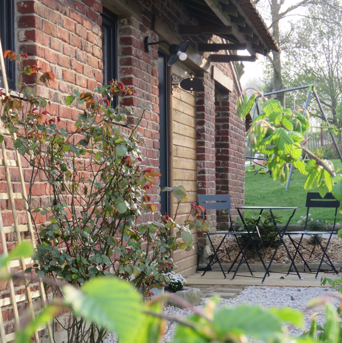 Charming single storey house with wood burning fireplace south facing west private and enclosed garden and terrace. This cute place, nestled in an outbuilding of the owners' house, is located on the edge of a quiet lane with a large park with trees, nature and meadows as neighbours. This place, not far from the Baie de Somme, the sea and the forest, will be ideal for a weekend, a holiday, or a telecommuting break for couples or families.