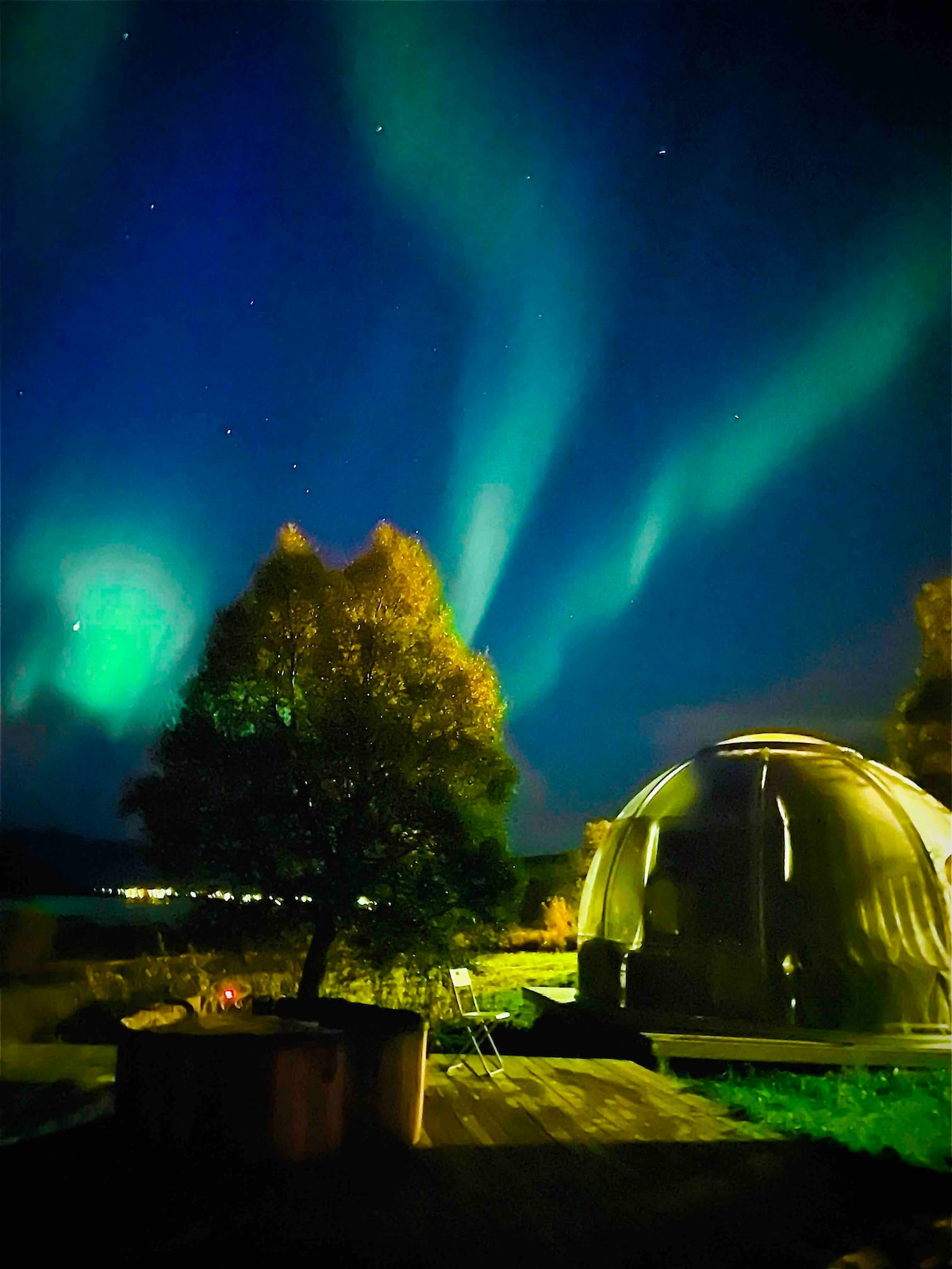 Disfruta del encantador entorno de este romántico lugar con una vista increíble. Duerme bajo el cielo, pero dentro, bajo un gran edredón noruego cálido y experimenta la naturaleza y el clima cambiante. - Contando las estrellas, escuchando el viento y la lluvia o viendo la mágica luz del norte! ¡Será una noche inolvidable! Puedes mejorar tu estancia para incluir: - Burbujas de bienvenida con algunos aperitivos - Cena servida en la cúpula o en el restaurante - desayuno en la cama o en el restaurante. 1500 NOK