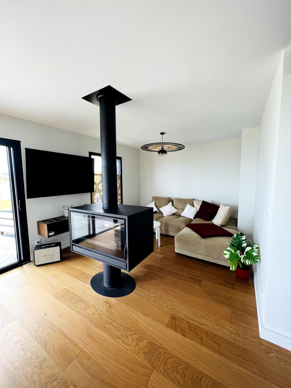 El alojamiento El apartamento está en 2 plantas con 2 habitaciones en fila. Ideal para una pareja con hijos. Se accede a través de una escalera exterior que conduce a una terraza con vistas al jardín privado con vistas a la Iglesia de St Denis. El apartamento tiene en la 1.ª planta una amplia sala de estar con una zona de comedor contigua a la cocina americana, una sala de estar equipada con una estufa de leña, un baño con ducha y aseos separados. Una escalera interior conduce a 2 dormitorios en fila arriba.