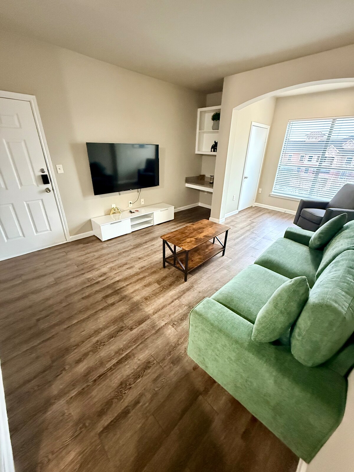 ¡Descubre el epítome de la vida moderna en nuestro departamento de una habitación bellamente diseñado! Este impresionante alojamiento ofrece una mezcla armoniosa de lujo y comodidad, con: *Amplia sala de estar * Planta abierta * Internet de fibra de Google/WiFi * Smart TV de 65pulgadas * Cocina espaciosa * Electrodomésticos de acero inoxidable *Cama grande y cómoda tamaño queen *ENORME vestidor *Lavadora y secadora dentro del apartamento * Gimnasio 24/7 en el sitio *Piscina estilo resort ¡Y mucho más! ¡Mezcla perfecta de lujo, comodidad y comodidad!
