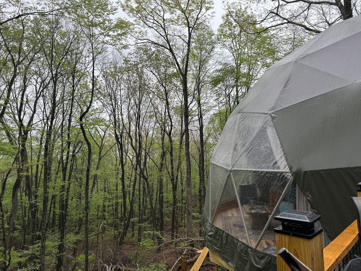 🌿 Luxury Glamping in the Blue Ridge Mountains! Escape to our 30-foot geodesic dome, perched on a sprawling 2000 sq ft deck surrounded by nature. Soak in your private jacuzzi under the stars, unwind in a plush queen bed, and enjoy a cozy loft with two single beds—perfect for families or friends. The dome includes a fully equipped kitchenette, BBQ grill, and all the modern comforts of home with the charm of outdoor living. Book now for a one-of-a-kind experience where peace meets adventure!