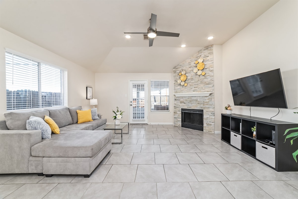 Bienvenidos a The Cozy Cactus, una casa de diseño única con un oasis privado en el patio trasero que incluye jacuzzi, televisor de 85 pulgadas, minigolf, juegos, parrilla y mucho más. Diseñado para ser la escapada perfecta para parejas, viajeros solos y grupos pequeños. Más aspectos destacados de este alojamiento: ✓ Camas king y queen con sábanas de lujo ✓ Aperitivos, café y té de cortesía ✓ Limpieza y desinfección profesionales ✓ Cocina totalmente equipada ✓ Ubicado cerca del centro de Houston