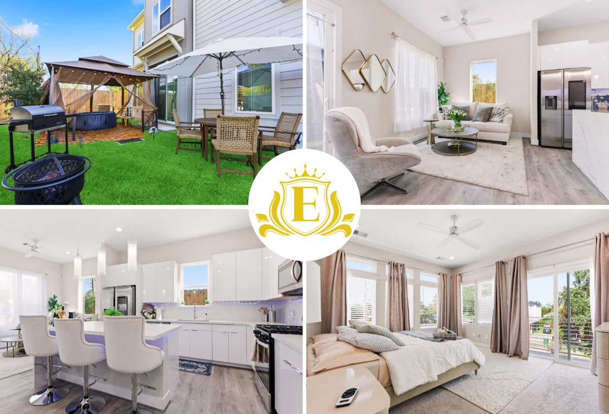 ¡Te damos la bienvenida a H-Town TAKEOVER con jacuzzi privado! Nuestra casa es una hermosa casa adosada de 2 pisos de NUEVA construcción. Esta casa se encuentra en Independence Heights, a 10 minutos en coche de las atracciones más populares de Houston. La Galleria, el centro de la ciudad y también acceso rápido a todas las principales autopistas y ubicación céntrica. La popular tienda de comestibles H-E-B y Whole Foods están en la calle de al lado. La cocina ofrece utensilios de cocina, cafetera y tostadora si prefieres cocinar en casa.