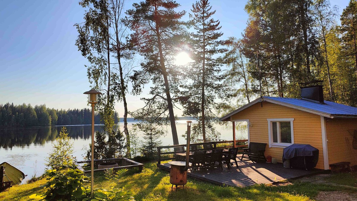 La cabaña de madera tradicional está situada en un lugar muy pacífico junto al lago. El lago Konnevesi está muy limpio y hermoso lago. El Parque Nacional de Etelä-Konnevesi se fundó en 2014. La cabaña y la sauna están a tu disposición durante tu estadía. La playa es segura para los niños. Incluye el bosque para la sauna y la chimenea. El inodoro está en el otro edificio fuera de la cabaña. El bote de remos está a tu disposición durante tu estancia. Se admiten mascotas.