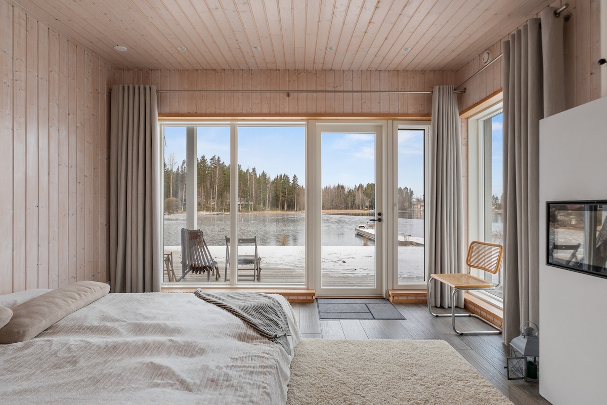 Esta casa de huéspedes recién construida en 2024 con cómodas comodidades se encuentra en medio de bosques antiguos, con una bahía privada y un lago tranquilo con vistas al atardecer. Es un lugar para «adoptar el ritmo de la naturaleza», con el sonido y la vista de la naturaleza salvaje. Durante el invierno, un centro de esquí local con zona de trineo para niños está abierto para todos, a unos 5 km de nuestro alojamiento. Además, puedes disfrutar de la sauna, pasear por el bosque y pescar en el hielo. Relajarse en el jacuzzi en este paisaje es una experiencia única.
