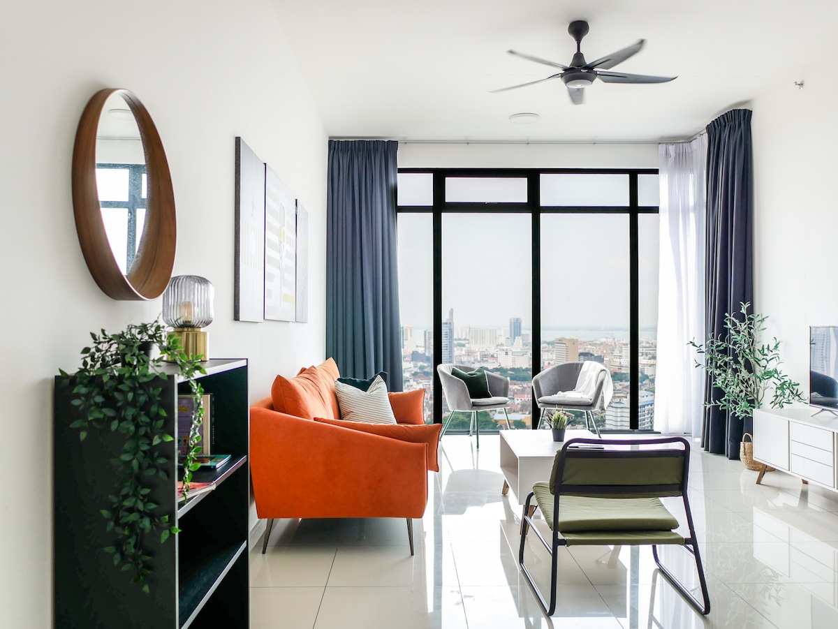 Urban Suites by Comfy Homestay SUPERANFITRIÓN de★ 5 estrellas ★ 3 dormitorios con 2 inodoros (vista a la ciudad) ★ 1 estacionamiento privado en el nivel 10 Wifi de alta velocidad de★ 100 Mbps ★ Totalmente climatizada. A ★ 2 minutos en auto del puente Penang. A ★ 2 minutos en auto de Karpal Singh Drive (Starbucks, Coffee Bean, McD, Family Mart, Karpal Singh Drive Seaview Promenade) A ★ 5 minutos en auto del centro comercial Queensbay ★ De 8 a 10 minutos en coche (menos de 5 km) de Chew Jetty, arte urbano y casco antiguo patrimonio de la UNESCO. A ★ 25 minutos en auto del aeropuerto.