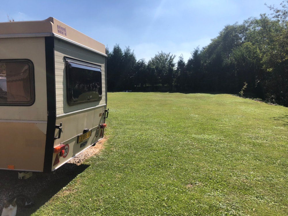 Una caravana en un pequeño agrocamping