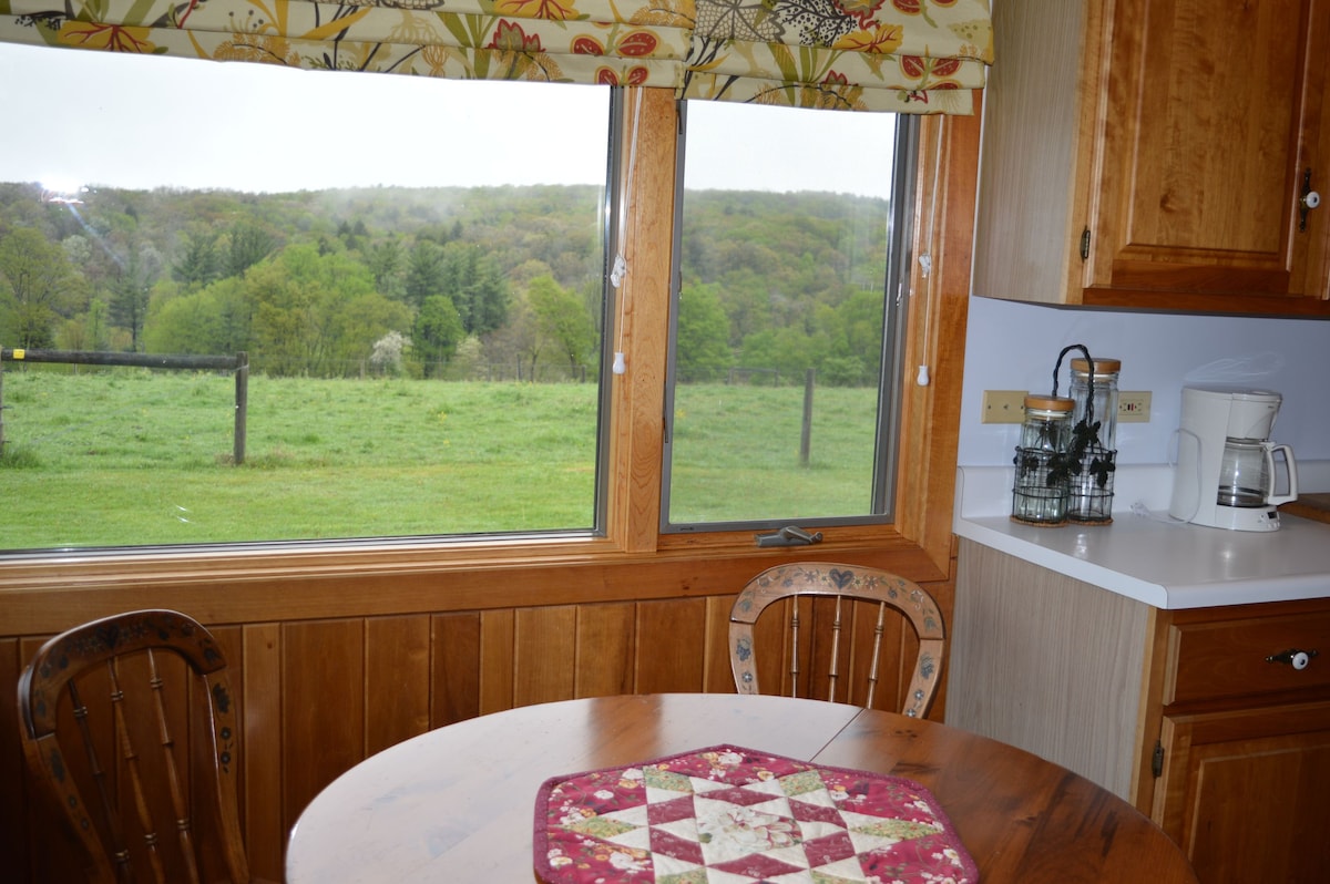 Disfruta del ambiente de esta tranquila y elegante granja, realzada por una gran cantidad de luz natural. Cada detalle es fresco, nuevo y cuidadosamente diseñado para tu comodidad (incluyendo cama tamaño queen con colchón Serta nuevo y de alta calidad y almohadas de lujo, bañera/ducha hermosa y espaciosa, suelos de madera restaurados, estufa y nevera de tamaño 3/4, Keurig y más). ¿Y fuera? ¡Vistas reales de la vida en la granja! Hay excelentes bistrós/restaurantes cerca. Acceso rápido a las principales carreteras que te llevan a Cranberry Twp. (8 millas)y al centro de Pittsburgh (15 millas).