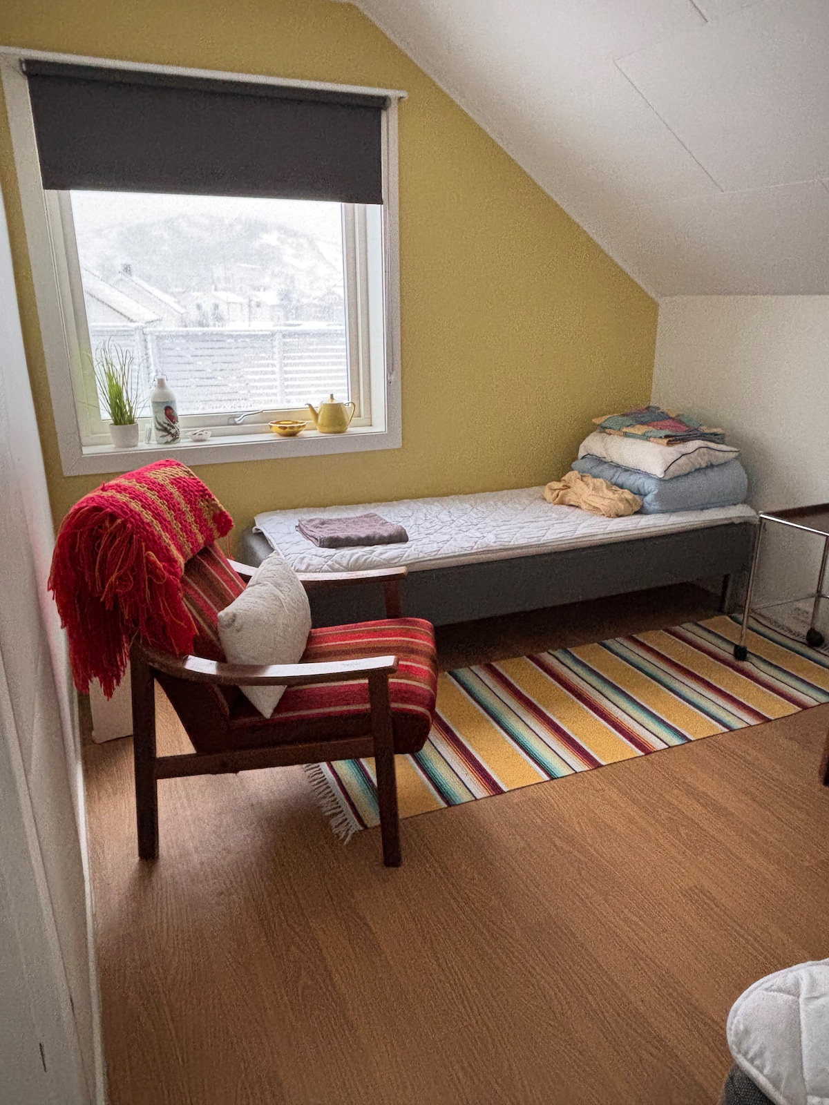 La habitación B tiene una cama individual de dos niveles, ¡puede alojar a dos personas! Es pequeño, pero asequible, ¡la habitación está muy limpia! Podemos ofrecer a los huéspedes desayuno, comida y cena de pago (con menú) Somos una pareja asiática. Tres habitaciones privadas, excelentemente ubicadas, en una zona tranquila. Desde/hacia el aeropuerto de Tromsø, Langnes Flybuss (autobús de enlace al aeropuerto) y autobuses urbanos (autobuses 40 y 24) operan entre el aeropuerto y el centro de Tromsø. Se tarda unos 15 minutos en autobús entre el aeropuerto y el centro de la ciudad. El precio de Flybuss a menudo depende del origen y destino del vuelo.El precio del billete es de 100 NOK para adultos y 50 NOK para niños. Autobuses urbanos, 40 y 24 hacia el centro de Tromsø, hasta la estación de Kongsbakken. Para esos autobuses urbanos, el precio de un solo billete es de 50 NOK para adultos y 25 NOK para niños. También hay una parada de taxis fuera de la terminal del aeropuerto, algunos taxis están en el centro de Tromsø. El taxi desde el aeropuerto hasta el centro de la ciudad cuesta alrededor de 180 coronas noruegas durante el día, con un cargo adicional los fines de semana y las noches.