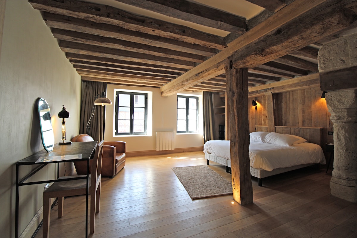 Charmant four à pain ancien en colombages, situé en bord de ruisseau il se compose de : - Salon avec un poêle à bois, - Cuisine, - A l’étage : -salle de douche/WC accessible par une échelle de meunier (voir photos), -chambre avec un lit 160x200 avec vue sur le ruisseau, accessible par une échelle de meunier (voir photos), Chambre et salle de bain ne communiquent pas. Salon de jardin, BBQ, parking privé, bois de chauffage inclus Note autre gite, la Maison de pierres, est à 100m