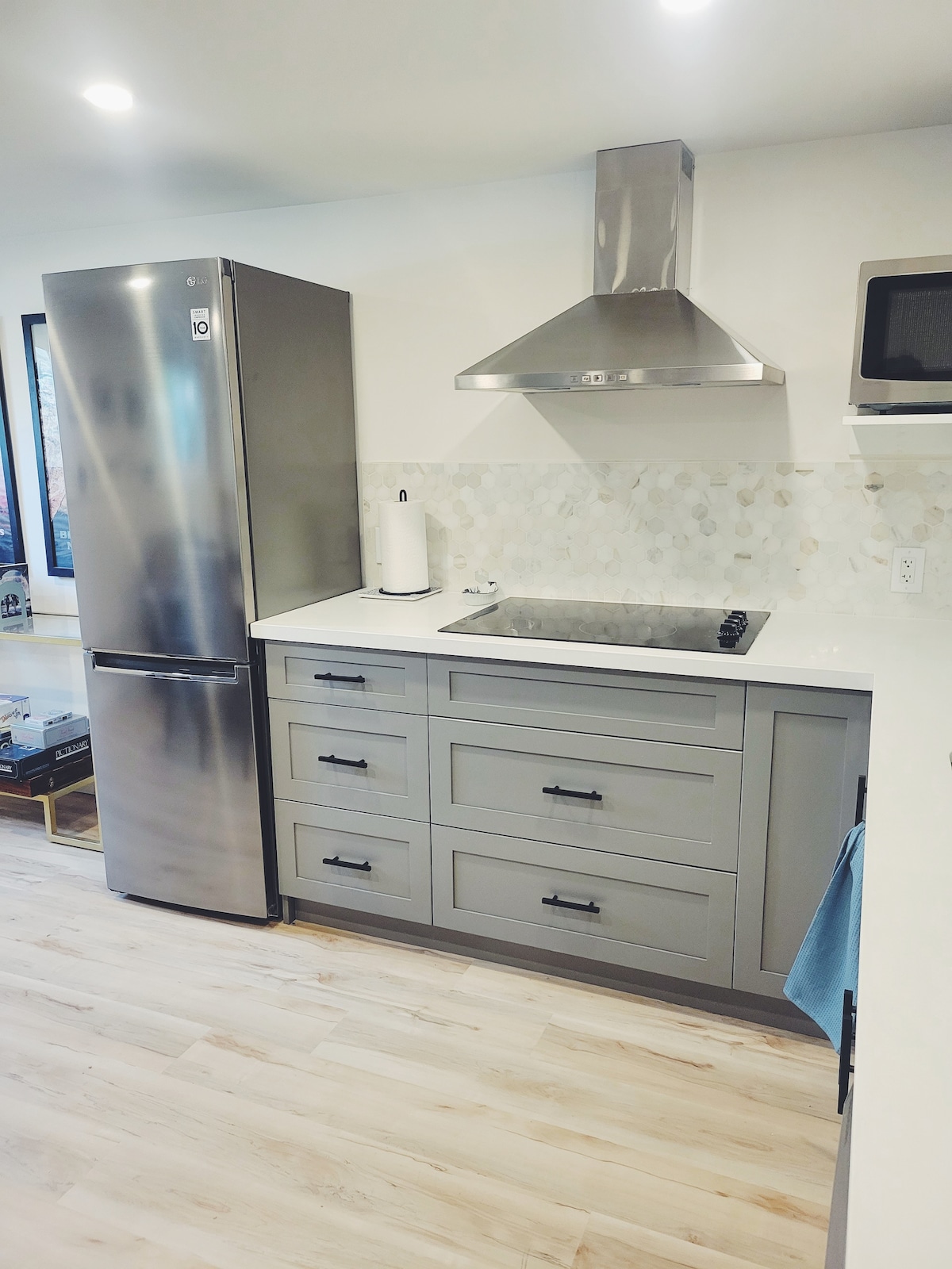 La cubierta superior es un increíble estudio de un dormitorio con un baño completo recién renovado, una cocina pequeña, una cama tamaño king increíble, un televisor inteligente Samsung HD de 65 pulgadas con un mostrador de borde vivo, un gran espacio de trabajo o área para comer. Una pared tiene ventanas del suelo al techo, ¡mucha luz natural! El exterior tiene un increíble jacuzzi, una zona rústica con chimenea, una hermosa zona de comedor al aire libre cubierta con barbacoa y ¡se puede escuchar el lago! Nota: el estudio es independiente, pero forma parte de una casa.