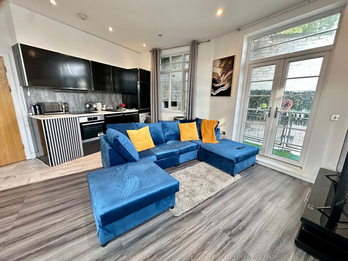 Apartamento recién reformado, espacioso y cómodo. Consta de un gran y cómodo salón, con Sky TV y banda ancha. Cocina moderna con todos los servicios y comodidades del hogar. Baño luminoso con ducha eléctrica a ras de suelo y mucho espacio de almacenamiento. Dormitorio doble de buen tamaño con armario triple, un gran dormitorio individual/oficina con puerta que conduce a la zona del patio privado. A menos de 5 minutos a pie del supermercado local, 3 pubs, Costa, Kings Mill Hospital y el lago. A 5 minutos en coche del centro de Mansfield.