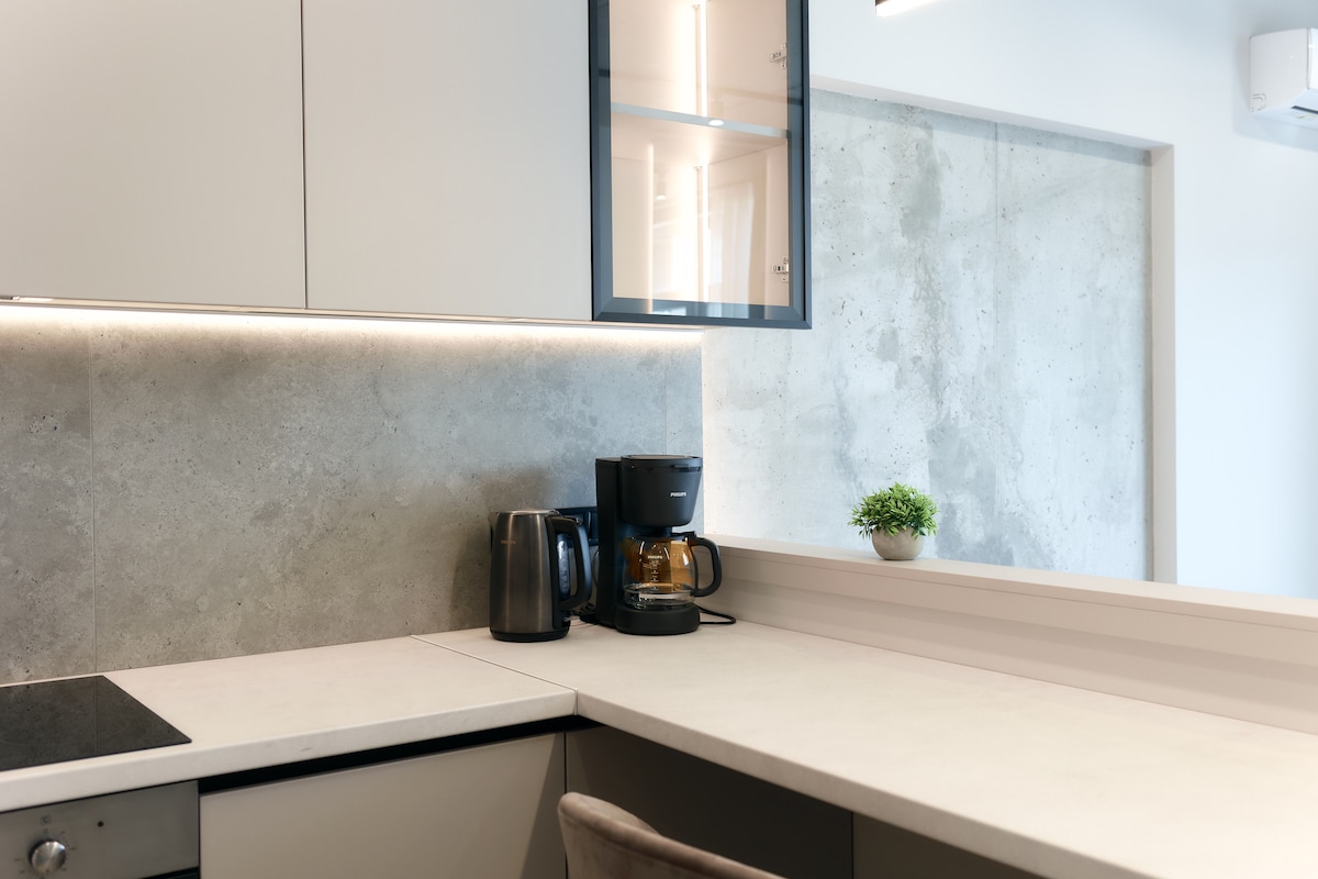 La casa está equipada con un generador para ascensores, agua y calefacción. Dentro del apartamento hay baterías de alimentación de reserva (wifi, TV, luz, nevera) Apartamento tipo estudio con una superficie total de 50 m², dormitorio y zona de cocina con sofá cama. El dormitorio no está separado de la cocina por una puerta. La cocina está equipada con electrodomésticos Bosch/Liebherr. El dormitorio tiene una cama grande de 180*200. El apartamento tiene 2 armarios grandes y espacio para guardar maletas. Televisión Samsung de 50", Smart TV, aplicación de Netflix activa. Cafetera Nespresso.