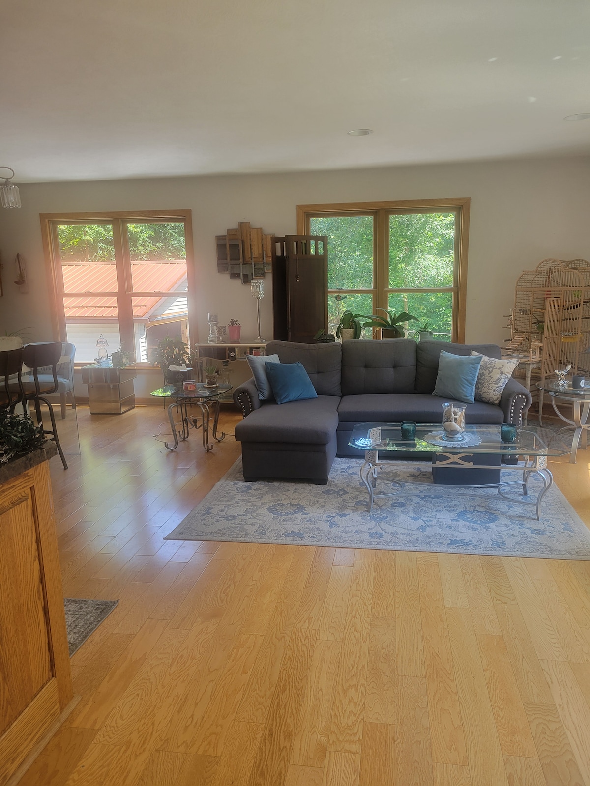 Una escapada tranquila que se ha mantenido meticulosamente y decorado cuidadosamente. Esta casa de huéspedes privada está situada en 10 acres a menos de 5 minutos del centro de Bellville y a solo 5 millas de la I-71. Relájate en el cómodo sofá o en uno de los dos espacios al aire libre que tienen excelentes vistas al campo. En el nivel principal, donde entras, encontrarás un escritorio, un aseo y una lavadora/secadora. Arriba está la sala de estar principal con una mesa de comedor, sala de estar, cocina, baño completo y un amplio dormitorio queen.