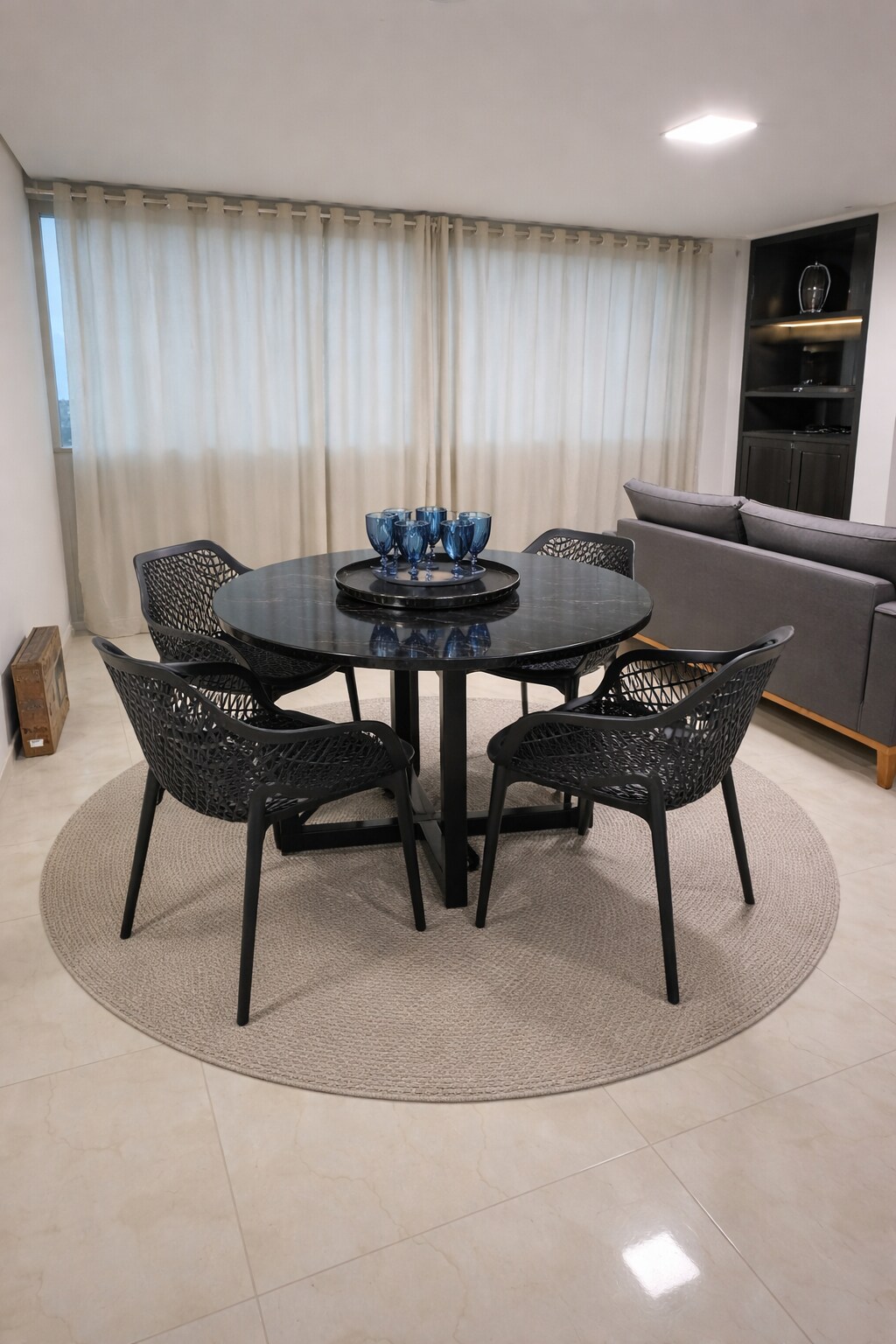 Hermoso apartamento, finamente decorado en el barrio de Santa Clara. Amplio, 3 dormitorios con camas dobles supercómodas, una zona gourmet equipada con una hermosa barbacoa y un hermoso jardín vertical, una hamaca y una pérgola perfectas para descansar. Cerca de supermercados, panaderías, hortifruti, gasolinera. ¡Todos a pocos pasos! Cocina completa montada, con AirFryer y varios utensilios.