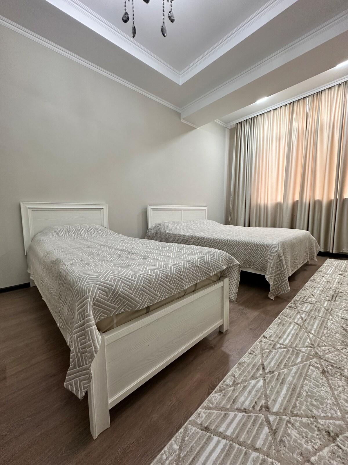 Ático moderno a estrenar en el piso 12 de un edificio nuevo (2 ascensores) en el centro de Bishkek. Totalmente equipado con todas las comodidades modernas, 2 aires acondicionados nuevos, cafetera Nespresso, cocina completa, calefacción por suelo radiante, wifi superrápido, escritorio elegante y todo lo necesario para trabajar o jugar. El apartamento tiene 2 balcones y da al este a través del noroeste. Dormitorio moderno con pared de cristal y persianas de privacidad con vestidor. Extremadamente tranquilo, a la vez que está en medio de todo.