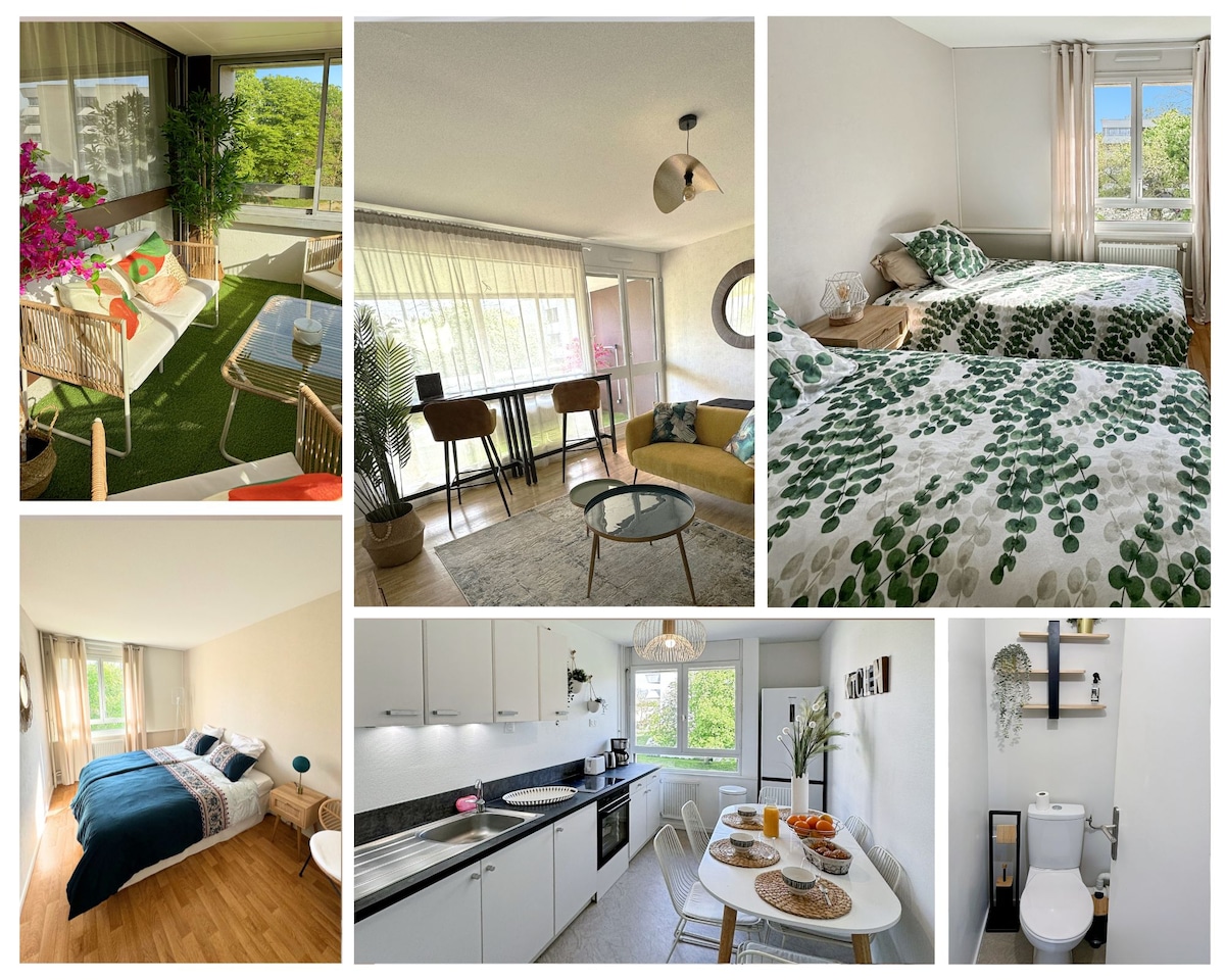 Ce charmant appartement de 64 m2 peut accueillir jusqu'à 4 personnes. Vous serez idéalement installés pour un séjour professionnel ou une escapade en famille. Parking gratuit, proche du métro (5 mn à pied), accès rocade à proximité immédiate. Possibilité place parking privé couvert. Au 2ème étage sans ascenseur, il se compose d'une cuisine équipée, un séjour, une salle de bains, un wc et de 2 chambres. Les draps et les serviettes sont inclus dans le prix du séjour.