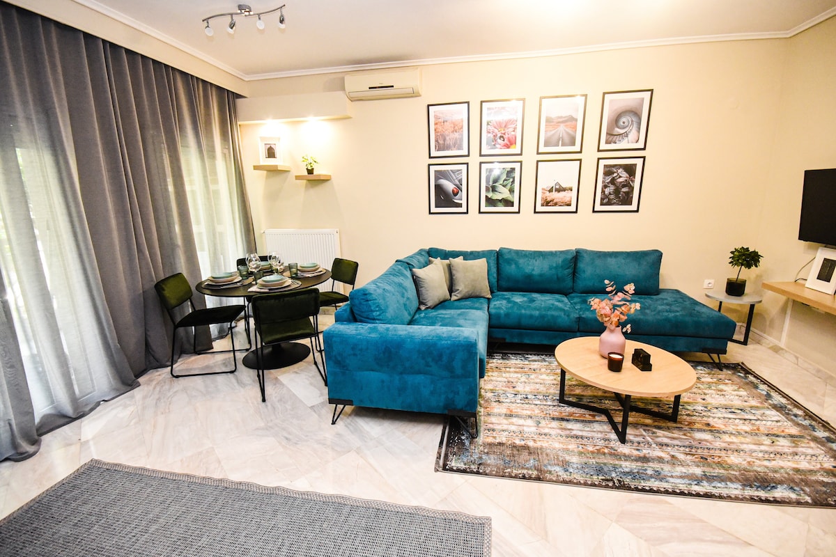 Relájate en este espacio tranquilo y elegante, un alojamiento totalmente renovado de 2 dormitorios y 2 baños completos con una terraza soleada. A pocos pasos de la nueva estación de metro y del paseo marítimo, esta casa cuidadosamente diseñada combina el encanto local con las comodidades modernas. ¡Te encantarán los 3 mercados de agricultores semanales cercanos! Estación ✔ Martiou – 3 minutos a pie Estación de✔ Agia Sofia y HELEXPO (centro) ~10-15 min Sala de✔ conciertos junto al agua – 9 minutos a pie ✔ Gimnasio (de pago) – 3 min a pie ¡Envíanos un mensaje hoy mismo para preguntar por tu estancia en Tesalónica!