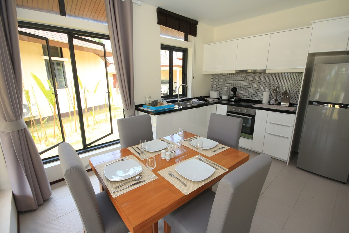 Nuestra villa de 2 dormitorios y 2 baños ofrece estilo casa de campo independiente junto al mar. Está a solo 50 metros (¡2 minutos a pie!) de la playa Had Yao y está a unos 30 minutos en coche del aeropuerto KBV. Es perfecta para familias pequeñas, parejas, nómadas digitales que quieran pasar un rato tranquilo lejos de las ciudades en una casa amueblada moderna de alta calidad. La villa se encuentra en una pequeña comunidad cerrada con 5 villas que comparten una piscina de 6 m x 20 m. Para los viajeros que quieren más servicios y restaurantes, Ao Nang sería más adecuado.