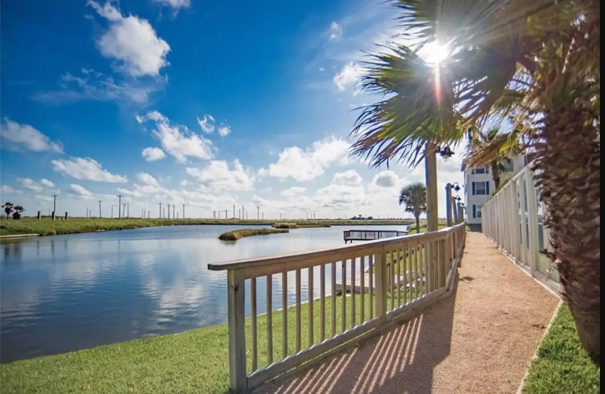 Bienvenido a nuestro Gulf Coast Condo, tu hogar lejos de casa en la maravillosa isla North Padre. Disfruta del café por la mañana o del vino por la noche desde nuestro balcón privado del segundo piso con vistas al mar y la brisa de la playa. Nuestro apartamento tiene capacidad para cuatro personas con espacio adicional adecuado para un colchón inflable. Durante tu estancia, disfruta de un corto paseo de cinco minutos hasta la playa de Whitecap, o puedes elegir una comodidad en el lugar como la piscina/bañera de hidromasaje, muelle/estanque de pesca privado, sauna, cenador con parrilla o gimnasio. También ofrecemos cable y wifi.