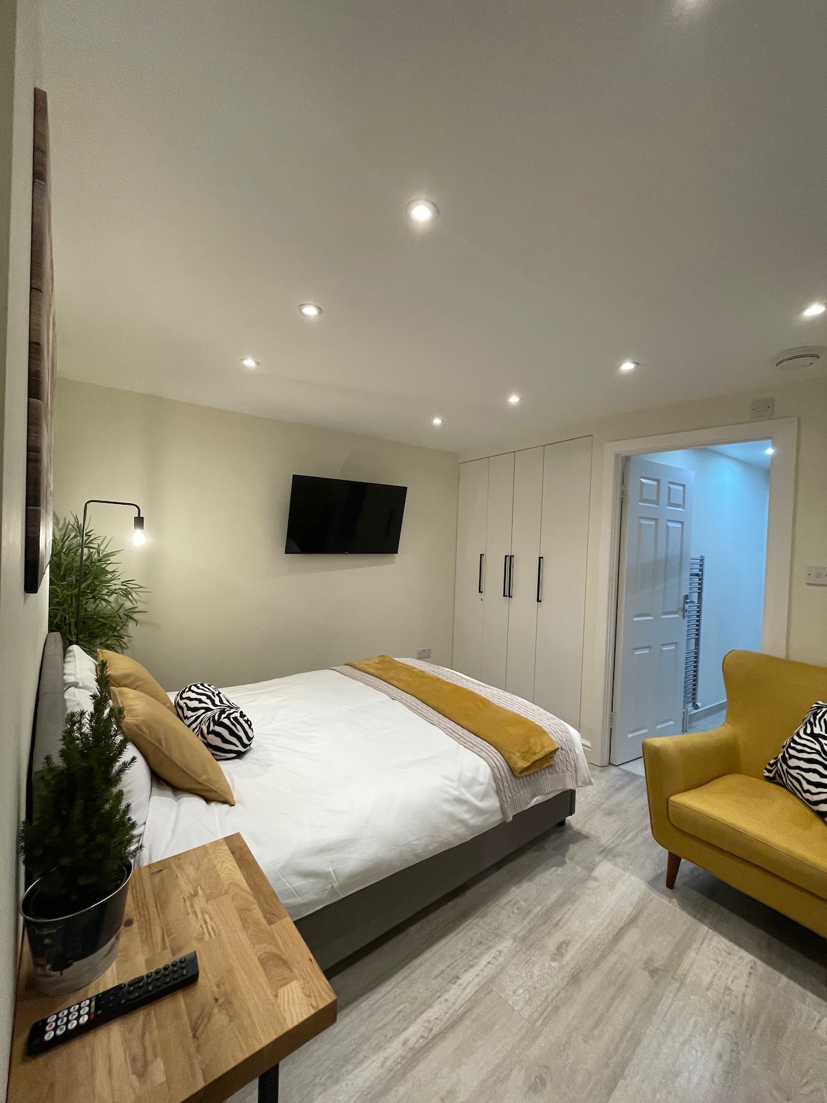 Alojamiento independiente junto a nuestra casa familiar en Bracknell. Ubicación tranquila y encantadora, a solo 0,7 millas del centro de Bracknell (The Lexicon). Un dormitorio moderno con baño privado y una zona de refrescos. Los huéspedes pueden disfrutar de acceso completo a nuestro jardín familiar. A 3 minutos a pie del supermercado Little Waitrose (abierto las 24 horas) o de KFC A 5 minutos a pie del pub Harvester A 7 minutos a pie del centro de ocio (piscina, gimnasio, spa, deportes de raqueta) A 15 minutos a pie/5 minutos en coche de la estación de tren/centro de Bracknell