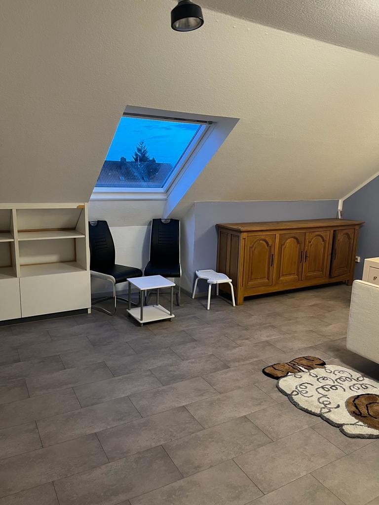 El apartamento con 45 m² se encuentra en el asentamiento de patio de clasificación Bauernfeind, en el ático de nuestra casa. El metro está a poca distancia a pie en 10 min. y una parada de la feria (a poca distancia 20 min.). El parque de ATRACCIONES Playmobil se encuentra a 20 minutos en coche. Hay espacio para un máximo 5 personas disponibles. Hay dos dormitorios, 1 cama doble y 2 camas individuales. En la sala de estar abierta hay una pequeña cocina con mesa de comedor y 1 x sofá cama.