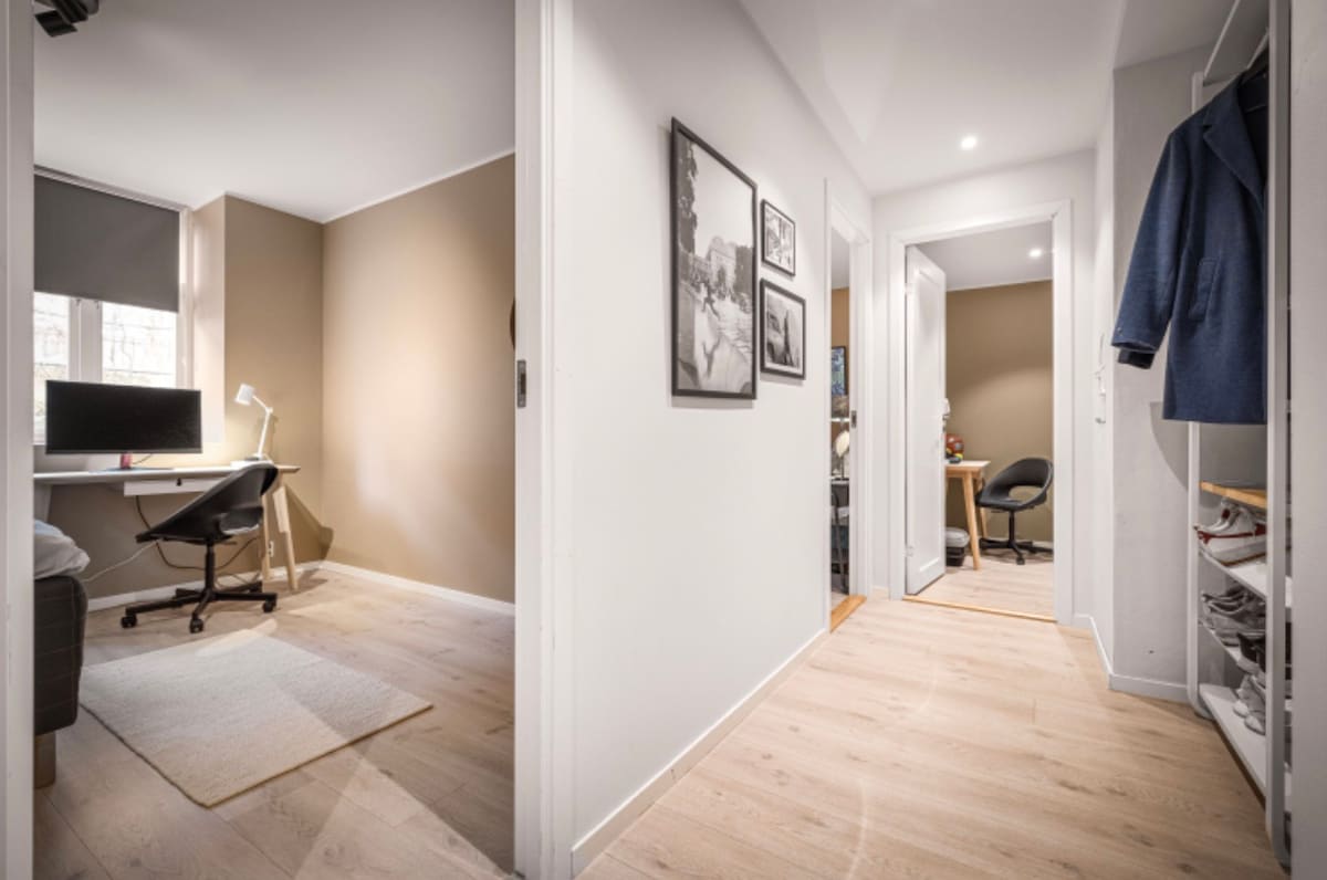 Un departamento encantador y moderno a solo 10 minutos a pie desde el centro de la ciudad. Nygårdsparken, el mejor parque de Bergen, lo separa del centro de la ciudad y ofrece una ubicación única y aislada. El apartamento está equipado con una buena cama doble y, de lo contrario, lo que puedas necesitar para una estancia cómoda. ¡La tienda de comestibles está a solo 100 metros de distancia! Además, encontrarás varias cafeterías y restaurantes locales justo afuera de la puerta. Si tienes auto, hay varios estacionamientos justo afuera del apartamento. Un apartamento imprescindible