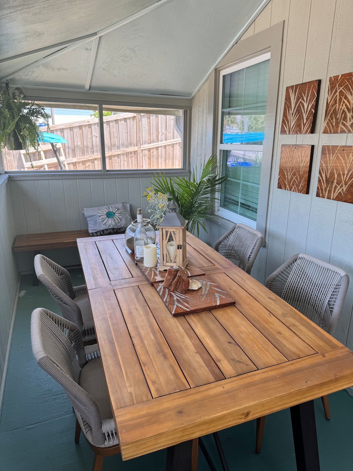 🐶 Bienvenido a BOW•WOW Beach•Bungalow™ 🏖. Un refugio tranquilo y apto para perros para todos los miembros de tu familia. Este pintoresco y acogedor «hogar lejos de casa» está cerca de la playa (1/3 millas), tiendas y restaurantes locales, pero en un barrio tranquilo lejos de las multitudes. Hermoso porche cerrado para relajarse y un patio trasero vallado muy espacioso en un lote doble para que todos disfruten. 📝Por favor, lee todo el anuncio y TODAS las normas antes de reservar. Los 🐶PERROS son siempre BIENVENIDOS. 💲DESCUENTOS para todas las reservas SEMANALES y MENSUALES.