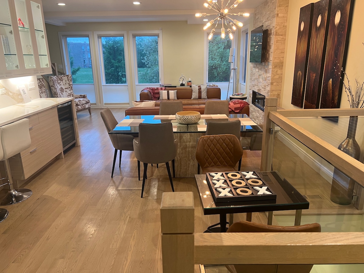 El lujo moderno te espera en este oasis urbano en el área de North Kenwood/ McCormick. Nueva construcción con todos los acabados nuevos y una decoración elegante. Gran luz natural, estacionamiento gratuito, vistas al lago Michigan y al horizonte de Chicago, ubicado en un callejón sin salida. Aprovecha las innumerables atracciones que ofrece la Ciudad de los Vientos. A pocos minutos de Navy Pier, Downtown, White Sox Stadium, Museum Campus, University of Chicago, 31st Street y Oakwood Beach. ¡Perfecto para fotos y filmaciones!
