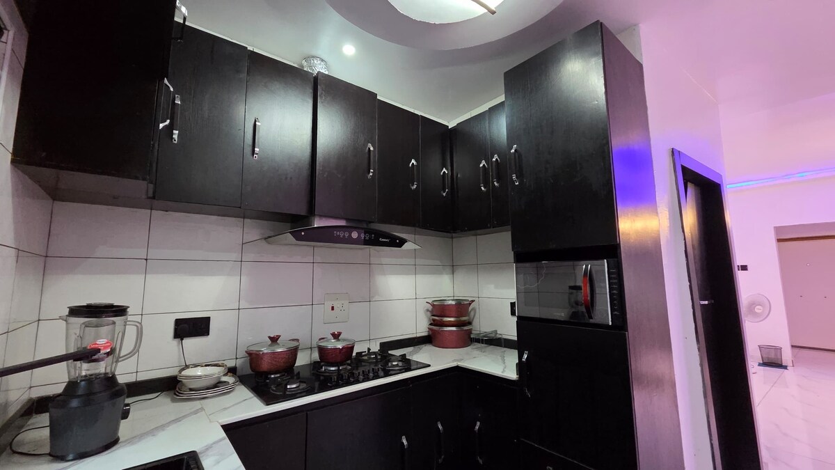 A stylish home away from home. This newly renovated 2-bedroom flat combines luxury with total reliability. Located in a spacious gated compound with parking for two cars, it features a robust 25kWh solar inverter system that power bedrooms A/C through the night—guaranteeing a cool, comfortable sleep regardless of the grid. Perfect for business travellers and families seeking comfort without compromise.