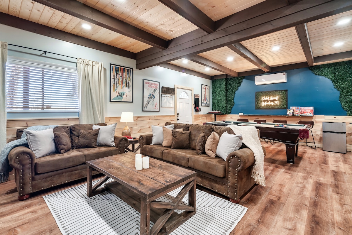 Cabaña 5BR/5BA, ciudad/piscina cerca, jacuzzi, sala de juegos