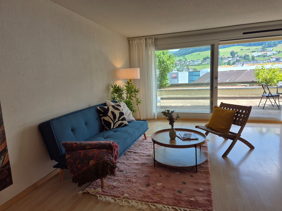 Bienvenido a nuestro acogedor estudio boho en Holzhäusern. Ubicado en una zona tranquila junto al parque de golf y rodeado de vegetación, y, pero a solo 10-20 minutos de Zug, Lucerna y Zúrich. Diseñado con mucho amor por los detalles, el estudio combina el encanto natural con la cálida hospitalidad suiza: tu refugio perfecto para relajarte, descubrir y sentirte bien.