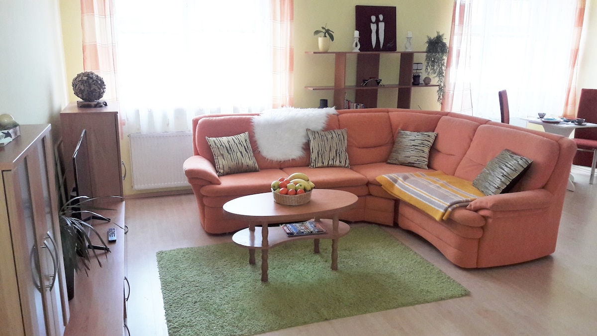 Nuestro departamento es ideal para 2 personas, también es adecuado para 4 personas. Está totalmente equipado. Todavía hay algo para ti en la nevera :-) Hay una cama doble en el dormitorio y una cama doble adicional (sofá cama) en la cocina. Está en el tercer piso en una casa de estilo artístico muy agradable.