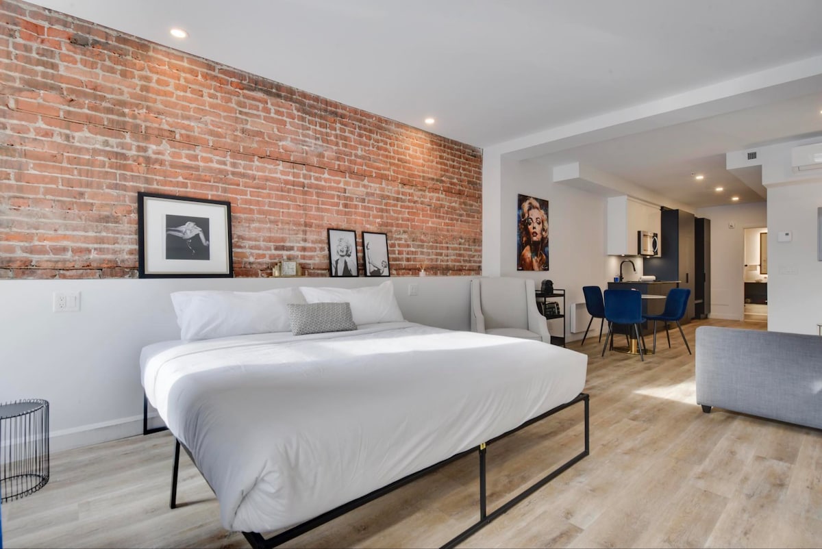 Disfruta de la sencillez de este alojamiento tranquilo y céntrico. Edificio histórico construido en 1900. Techos altos con una cocina abierta. Dormitorio con puertas francesas al patio; ideal para almorzar al sol. Cocina totalmente equipada con lavavajillas. Lavadora/secadora. Todo incluido. La cama es tamaño queen (59" x 77").
