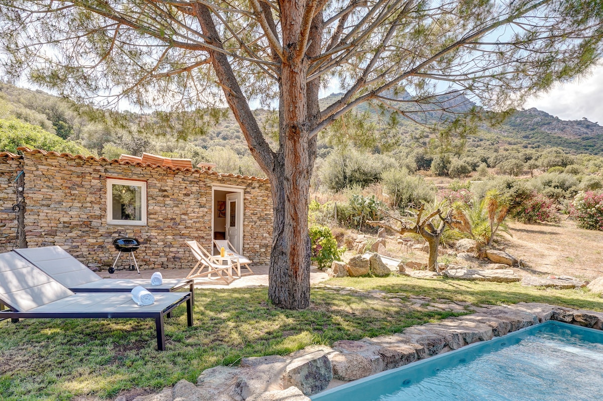 Casa de piedra de Córcega entre mar-montaña-piscina.
