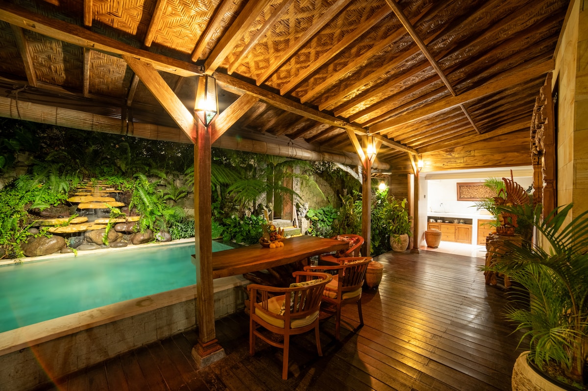 Costa salvaje cerca de una casa de playa de estilo balinés