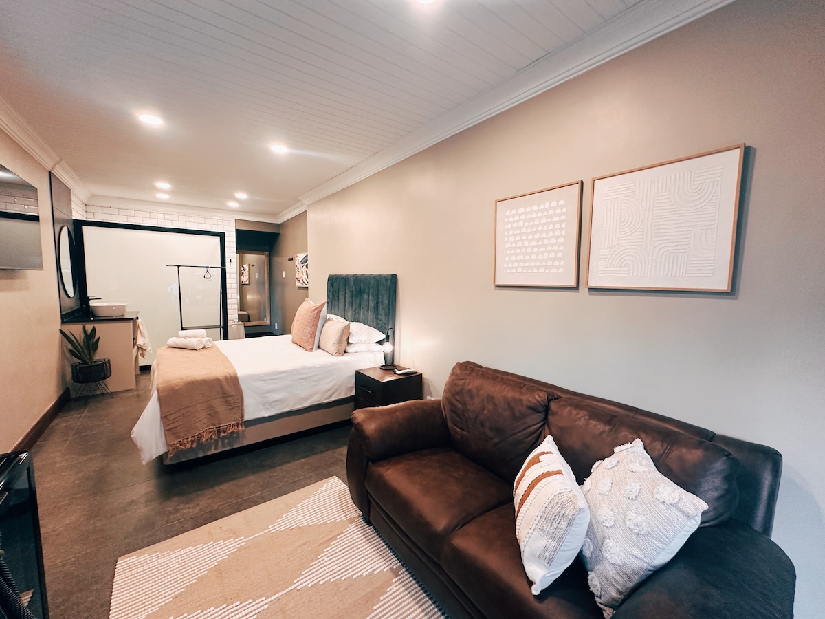 El estudio de lujo cuenta con una cama tamaño queen y un baño privado. Disfruta de wifi, aire acondicionado y una televisión inteligente con DStv y Netflix. Una cocina bien equipada con un quemador de gas, microondas y nevera añade comodidad a su estancia.
