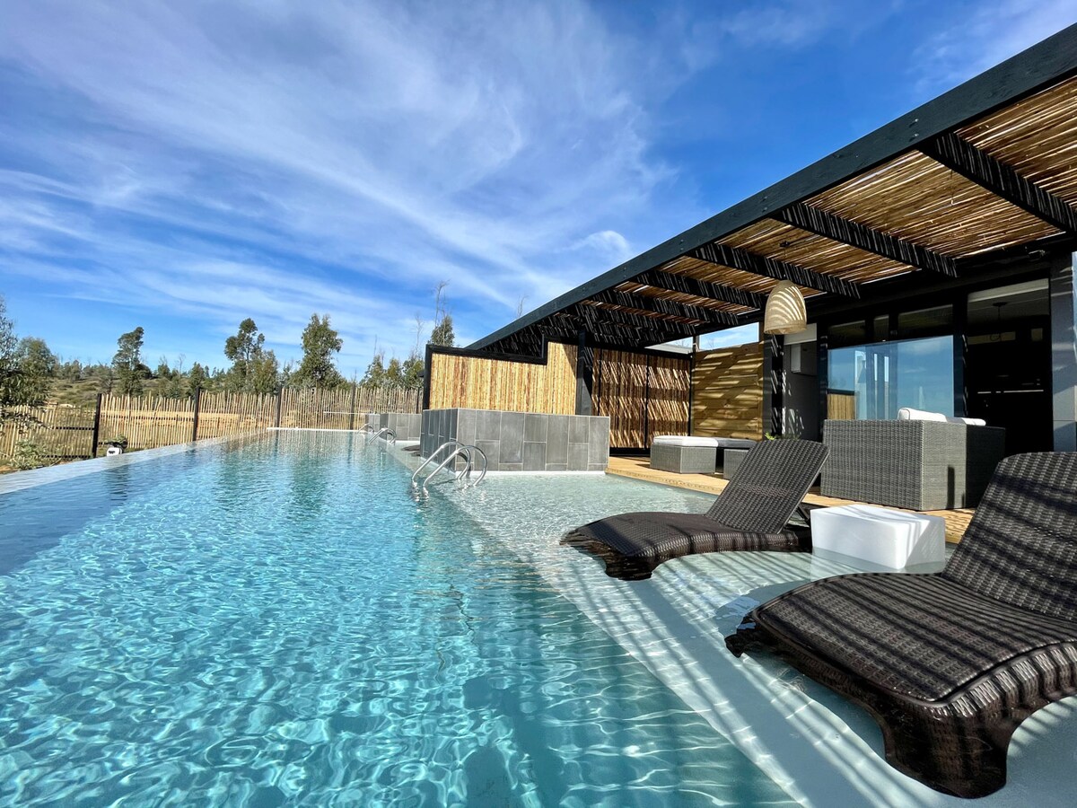 Recién inaugurado y único en la zona, este exclusivo lugar deja que las imágenes hablen por si solas, con una piscina de más de 22 mts de largo y un jacuzzi en la terraza de cada habitación, hacen que Simple y Puro Chorrillos se convierta en un lugar único Ubicado a solo 2.5 km de la vega de Pupuya, con clima templado y protegido del viento, se puede disfrutar de tardes enteras de piscina o terminar en tu propio jacuzzi bebiendo una copa de vino mirando las estrellas.