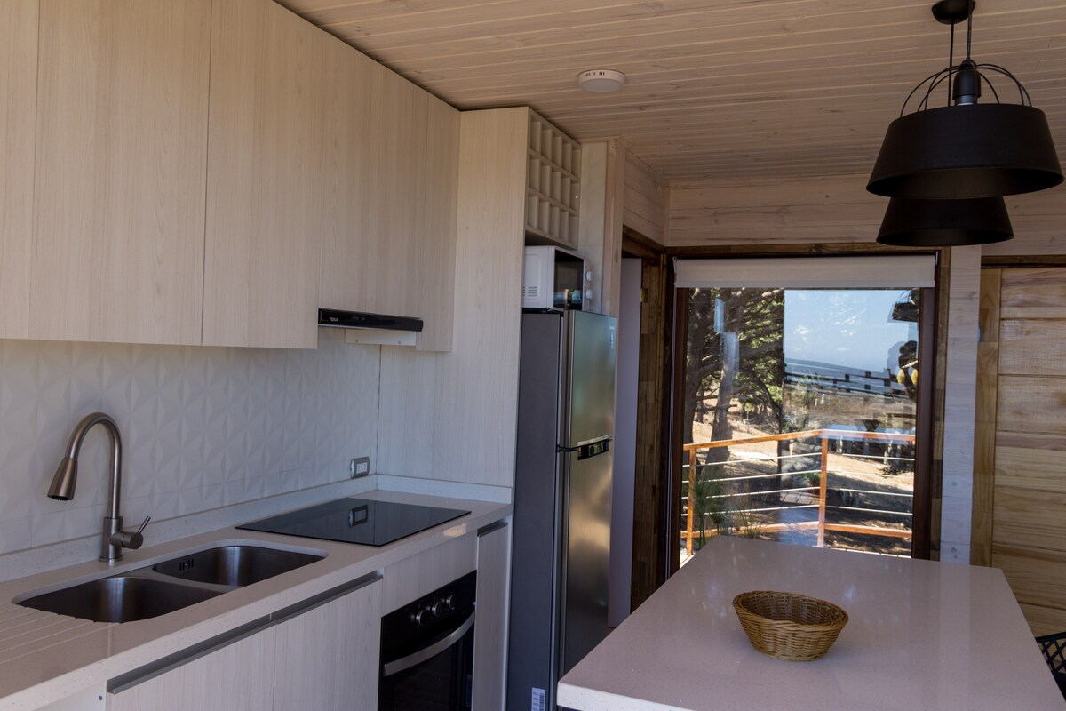 Acogedor refugio en doble altura(47mt2), de diseño único. Ideal para escapar del viento costero característico de la zona y disfrutar de templados valles, quebradas y naturaleza virgen. A pasos de la playa, restaurantes y supermercados. Servicio de HOT TUB $38.500 por estadías de 2 noches. Distancias: - A 2min de supermercado. - A 2,5km de La Vega de pupuya. - A 4km de Matanzas. - A 24km de Puertecillo. (40min) - A metros de Arena Pupuya Padel. En días de LLUVIA uso de 4x4 es requerido.