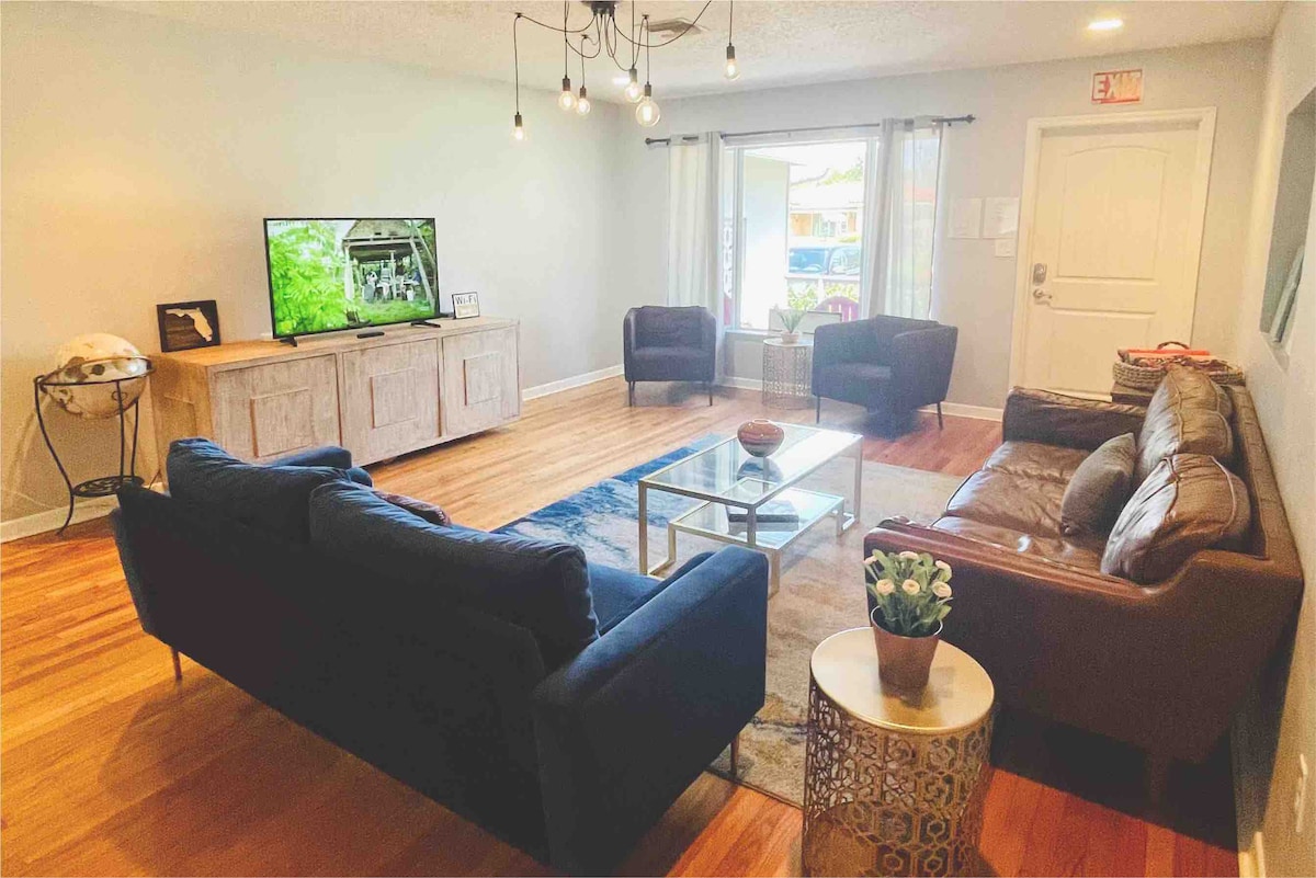 La unidad ha sido completamente remodelada, pintura fresca, cocina nueva, baño nuevo, azulejos nuevos, edificio con patio privado y cámaras de seguridad, estacionamiento gratuito, Smart TV con Netflix gratuito. Colchones de espuma viscoelástica tanto en el dormitorio como en el sofá cama de la sala de estar. Paisaje tropical en el patio trasero y parrilla. El apartamento está a poca distancia a pie de Young Circle, con el centro de Hollywood, restaurantes cercanos y vida nocturna. Se encuentra a unos 2,5 kilómetros de la hermosa playa de Hollywood y del mejor paseo marítimo del sur de Florida.