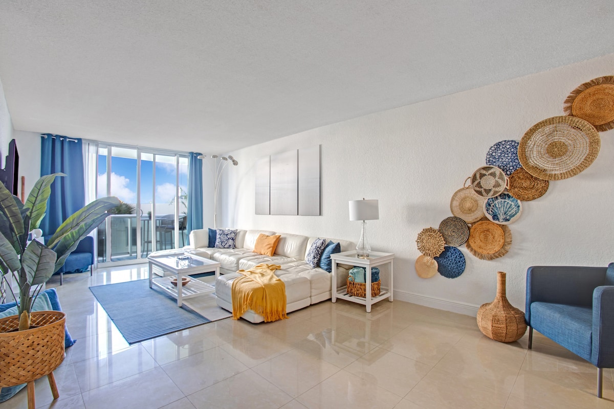A solo unos pasos de la playa con increíbles vistas al mar desde el piso 29, este elegante condominio de 2 dormitorios tiene todo lo que necesitas para relajarte y jugar, y está perfectamente ubicado para explorar el sur de Florida. Pasa el día nadando en dos piscinas con cabañas al aire libre y servicio de restaurante/bar junto a la piscina. Disfruta de un entrenamiento en el gimnasio o en las canchas de tenis y racquetball. Al caer la noche, disfruta de una película en el cine al aire libre o juega en la terraza.