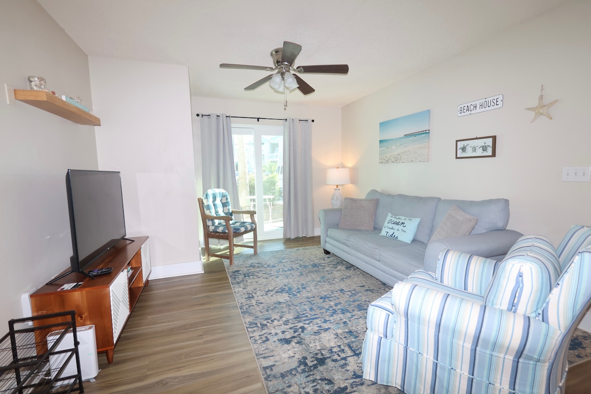 Ubicado en el corazón de Destin, Florida, este dúplex de 2 dormitorios y 2 baños en el nivel superior es el refugio perfecto. Despiértate con una serena vista al lago privado desde tu balcón y disfruta de la comodidad de estar a solo unos pasos de la prístina playa de arena blanca. Cada dormitorio cuenta con una lujosa cama tamaño king, mientras que la cocina totalmente equipada hace que comer sea fácil. Relájate junto a la piscina comunitaria o disfruta de noches tranquilas en tu patio privado. Esta villa combina el encanto costero con el confort moderno para una escapada inolvidable.