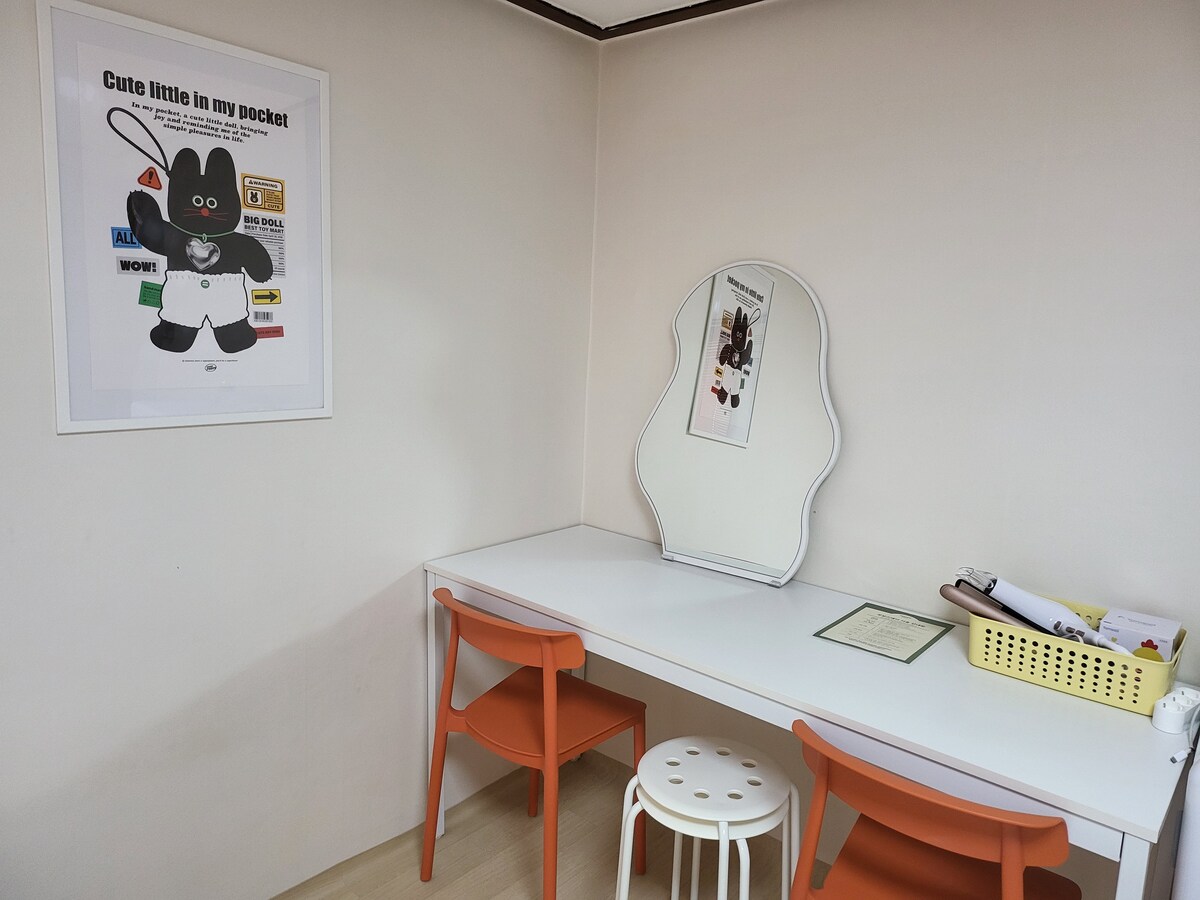 * A 5 minutos a pie de la tienda principal de la Catedral del Sagrado Corazón, * A 2 minutos caminando desde la estación de Jungangno, * A 10 minutos a pie de la estación de Daejeon, * Estadio de béisbol Hanwha a 9 minutos en auto. Hay una cama individual para que una persona descanse cómoda y agradablemente, y está equipada con armario, mesa, silla, nevera y espejo. En el baño después de olimodeling, proporcionamos champú, tratamiento, gel de baño, pasta de dientes y papel higiénico. La cocina compartida tiene lavadora, secadora, purificador de agua, inducción y utensilios de cocina, por lo que es muy conveniente para estancias largas. Se permite estacionar.