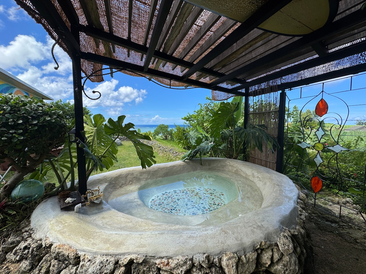 Tipo de habitación Cuando abrí la ventana del dormitorio, vi el mar azul cobalto frente a mí. Cabaña de tipo muy sencillo y lujoso que se encuentra como si estuviera rodeada de bosque. Es un lugar perfecto para disfrutar de tu tiempo libre y de la naturaleza de Okinawa, leer en la terraza del bosque, nadar en el mar, beber café mientras escuchas el sonido de las olas en la cafetería adyacente, etc. ☆Desayuno incluido en una cafetería con vistas al mar. Alquiler ☆gratuito de bicicletas eléctricas. Traslados ☆gratuitos en coche dentro de la ciudad de Nanjo.