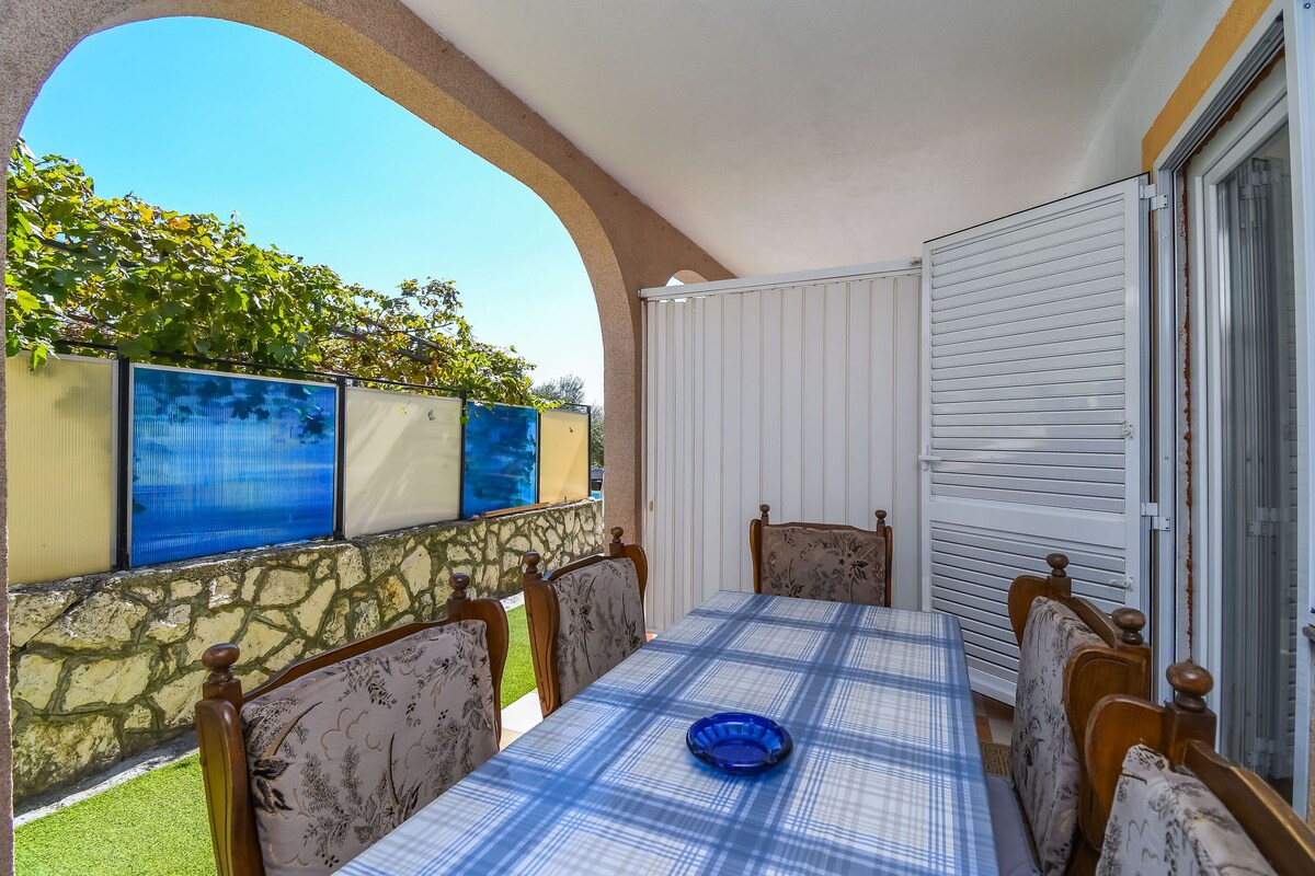 Bienvenido a nuestro acogedor estudio de jardín, un lugar encantador para una estancia tranquila y placentera. Nuestro estudio está situado a solo 300 metros de la playa y a 2 km del encantador casco antiguo de Trogir, declarado Patrimonio de la Humanidad por la UNESCO. Nuestro estudio puede alojar hasta dos huéspedes y tiene una pequeña cocina bien equipada, una cama cómoda, un baño privado y una acogedora terraza. También puedes usar la parrilla compartida en el jardín y disfrutar de una barbacoa. ¡Ven y disfruta del mar y la ciudad histórica!